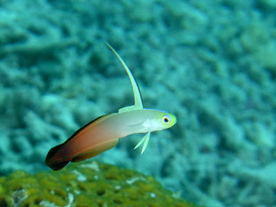 | アカネハナゴイ 珊瑚の上を乱舞しています!気持ちいいなぁ〜〜 撮影:だいちゃん |