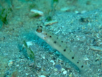 フタホシタカノハハゼ 砂地でとても目立ちます!! |