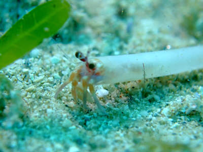 極小のヤドカリでしたね〜〜^0^ 宿が筒状の管に。。。貝殻じゃなかったね??? ヤドカリは、3〜4mm程 苦労したね撮影:愛ちゃん |