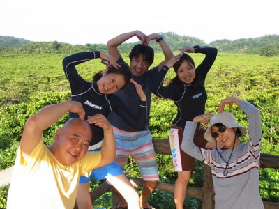 | ポイント付く前に浦内川のマングローブ前で集合写真! | 今日のポイントはフリークス:ドロップぽい感じのポイント |