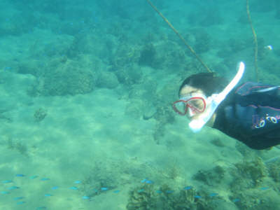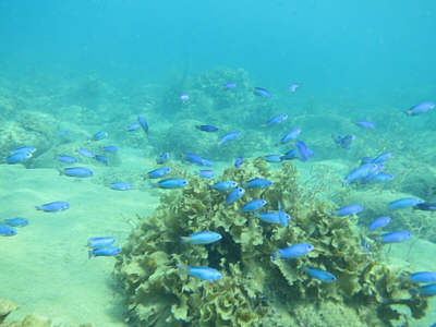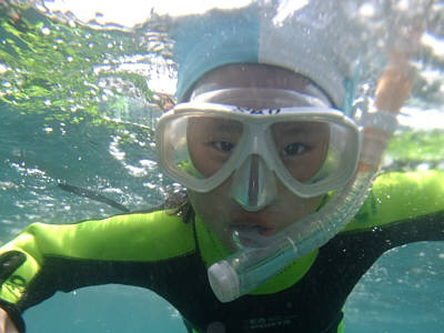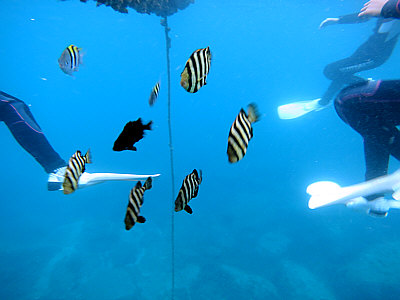 | 上手くなると水中をスイスイ!! | イシダイの幼魚が足下に〜〜!! | ソラスズメダイがいっぱい! |