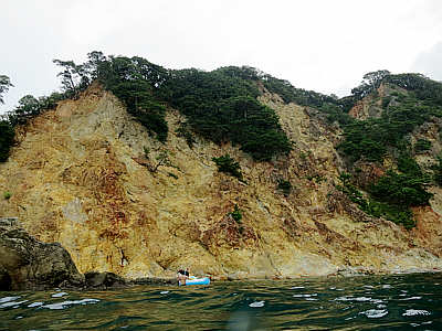 | 小学1年生もトライ! | 子供用マスクでばっちり! | 黄金崎の黄金に光る岩肌 |